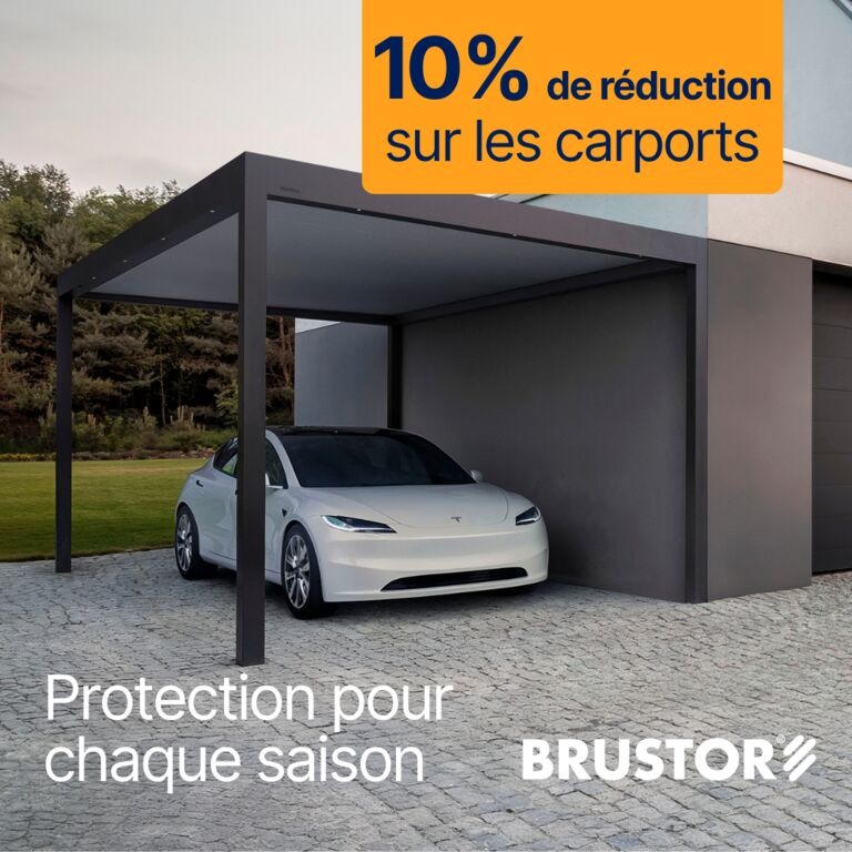 Profitez de 10 % de remise dès maintenant sur les pergolas, carports, stores de véranda et screens solaires Brustor !